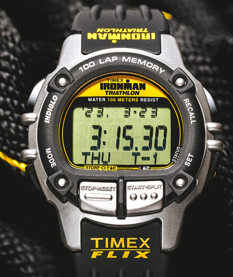 There's no heart rate monitor. No GPS, no altimeter, no compass, no world time, no Bluetooth®. We teamed up with Huckberry and dipped into our archives to take you back to the summer of '99 for the antithesis of the modern smartwatch, and the perfect adventure or workout companion. Introducing: TIMEX IRONMAN® Flix Reissue x Huckberry.