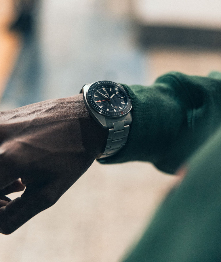 Built to fit right into your EDC suite, The James Brand × Timex Automatic GMT is offered as a gift set with two versatile attachments: a self-adjustable brushed stainless-steel bracelet with a new 3-link design, and a two-piece fabric strap secured with a stainless-steel buckle. Both are equipped with quick-release spring bars that make it easy to switch between the two while you’re on the move.